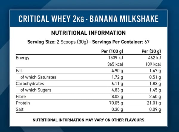Critical Whey Protein containis high levels of protein and branched chain amino acids (BCAAs).