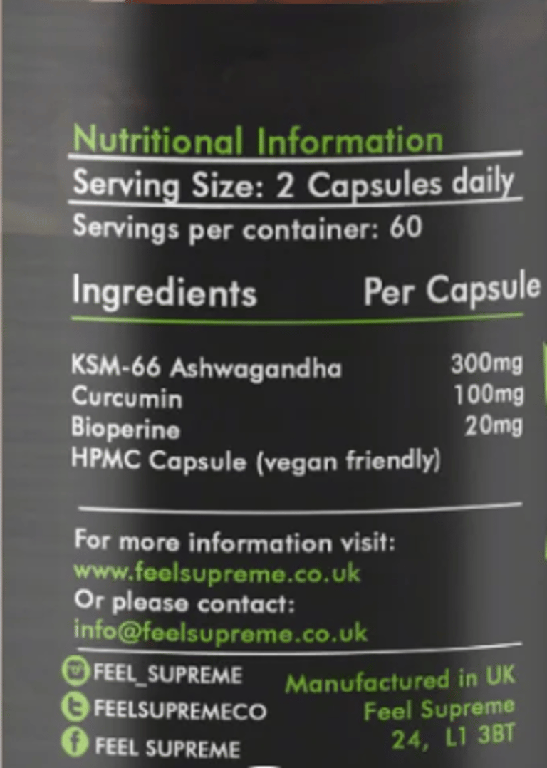 Feel Supreme KSM66 Ashwagandha with Curcumin (60 Veg caps)