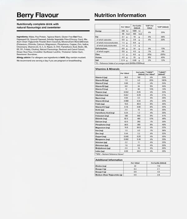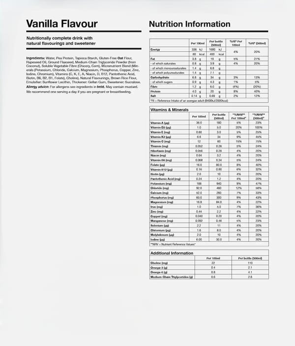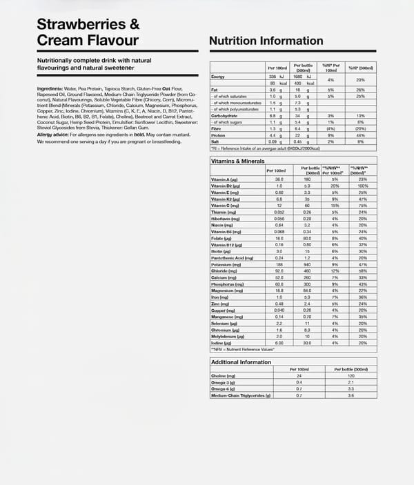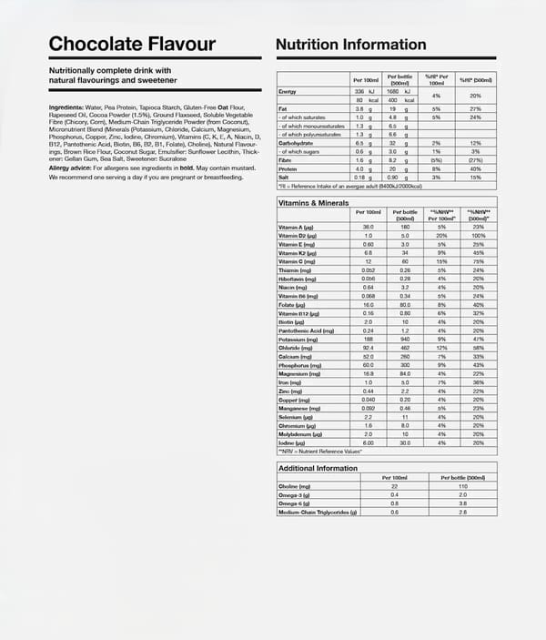 Each 500 ml bottle contains 20g of protein, 26 essential vitamins and minerals and a balanced mix of carbs, plant-based protein, healthy fats and fibre.